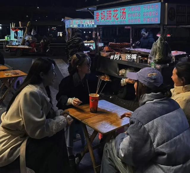 这边街头的路边摊,虽然环境一般,但是却充满了烟火气,作为明星的她们这一刻特别接地气,赵露思还拿着串串去喂好友,气氛特别欢乐。